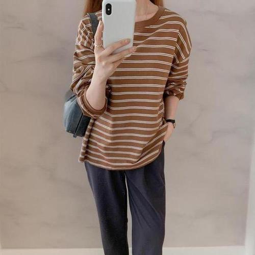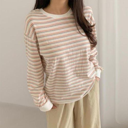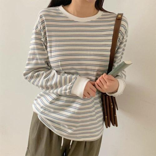 [다잇템]여자 줄무늬 링거티셔츠 가을긴팔 굴림 티셔츠