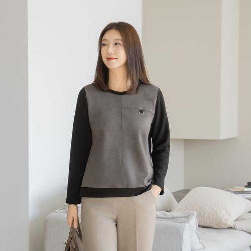 엄마옷 마담4060 D링스웨이드배색티셔츠-QTE2510054-