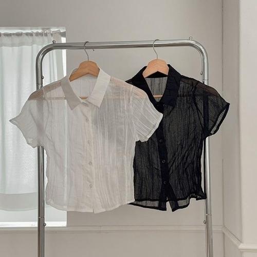 [다잇템][다잇템] 여성 여름시스루 남방 슬림핏 반소매 크롭카라 링클_22075362_588872