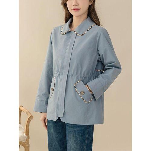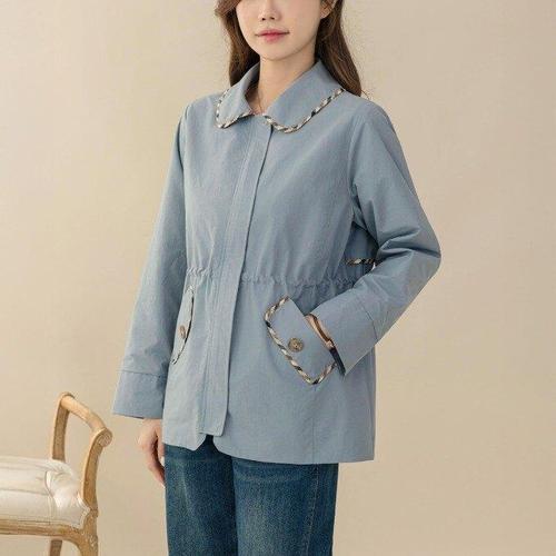 [마담엘레강스] 모스트 체크배색 트렌치 자켓 K241JK09_딥그린