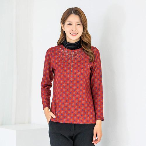 엄마옷 반폴라 도형 긴팔 티셔츠 TP511188 중년여성의류/60대/70대/마담/빅사이즈/할머니옷