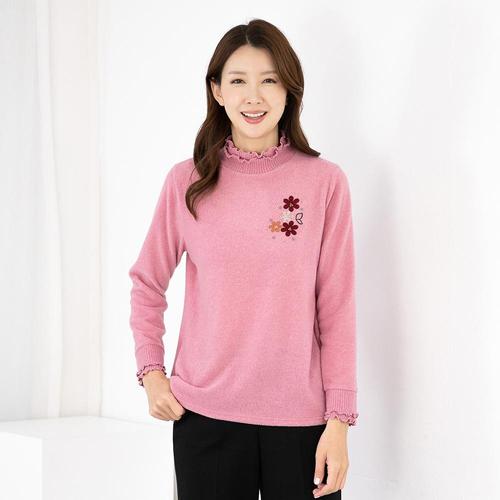 엄마옷 드리다 여자 날날이 하이넥 플라워 패치 빅사이즈 티셔츠 40-50대 미시 중년여성 마담옷 선물 모임