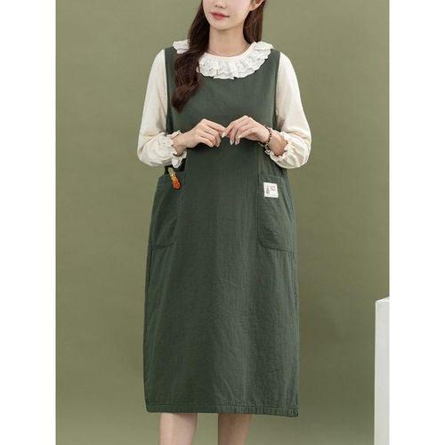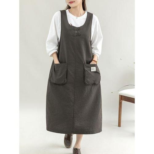 여성 시원 편안 면 마 소재 오버핏 A라인 롱 원피스 캐주얼한 디자인 봄 여름 가을 매력 반팔 스타일 활동적 일상 생활 안성맞춤 새로운 시즌스타일링