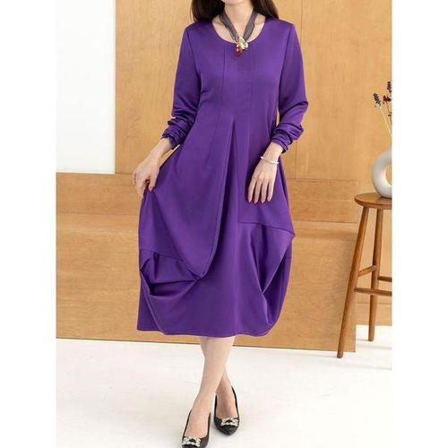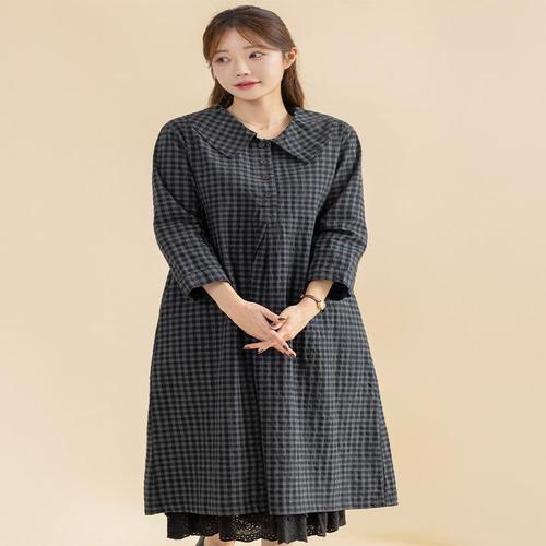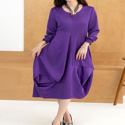 중년여성 오버핏 셔링 칠부소매 롱 원피스 빅사이즈 50대원피스 루즈핏 무릎까지 치마