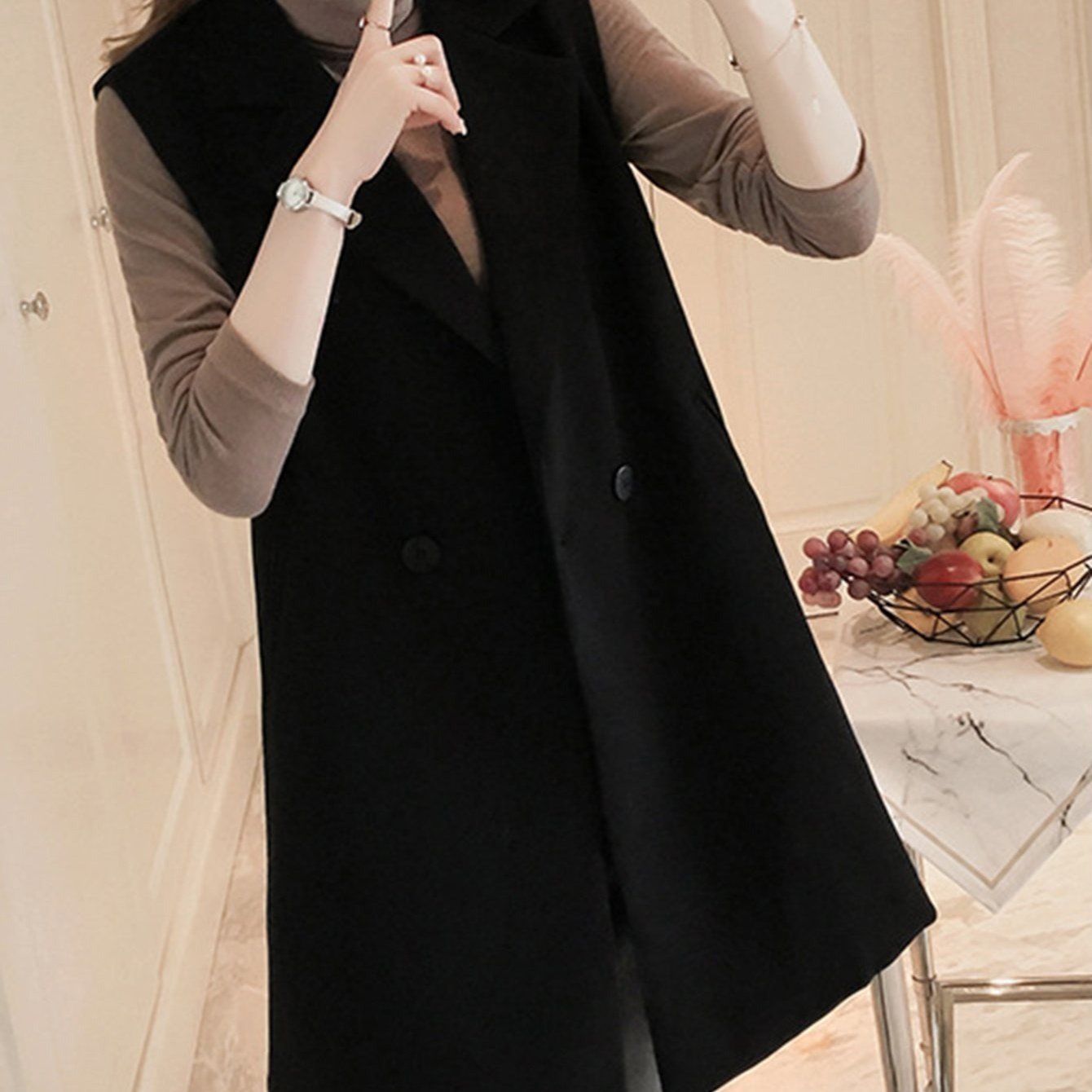 TEMU 여성 봄 캐주얼 빅사이즈 블랙 롱베스트 루즈핏 정장 롱조끼 100%폴리에스터