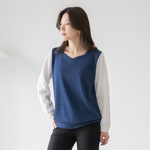 엄마옷 마담4060 누아소매배색티셔츠 -QTE2602029-