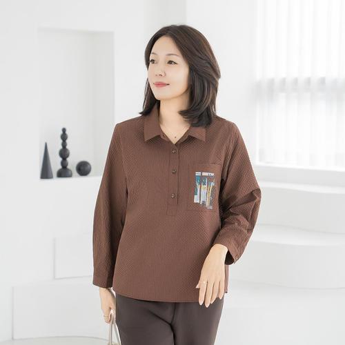 엄마옷 마담4060 반오픈포켓나염블라우스-QBL2509045-