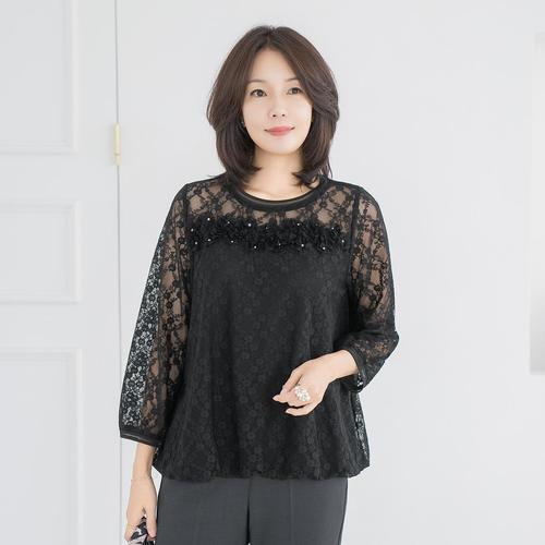 엄마옷 마담4060 검은진주핀턱블라우스 데일리 중년여성 -ZBL2509071-
