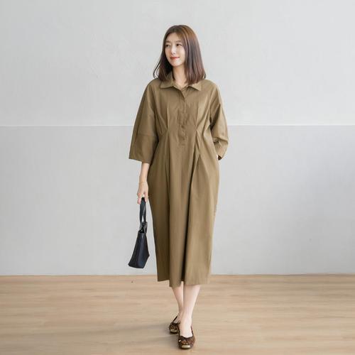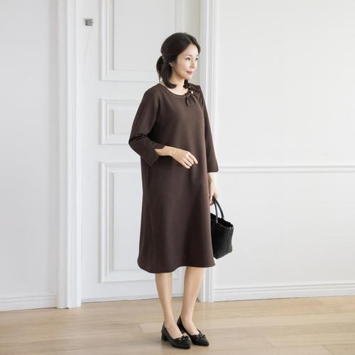 엄마옷 마담4060 모던베이직 사선절개버튼원피스-QOP2509014-