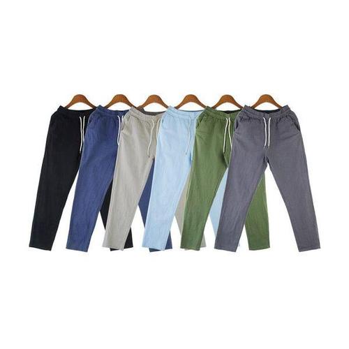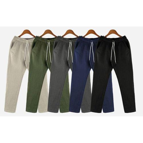 남성용 코튼 린넨 바지, 캐주얼 단색, 통기성 스트리트웨어, 느슨한 스트레이트 드로스트링, 헐렁한 경량 스포츠 바지, 신상
