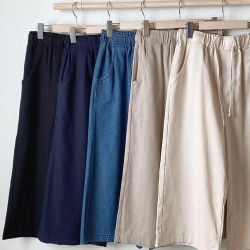 내추럴 린넨 코튼 린넨 스트레이트 레그 캐주얼 팬츠 통기성 좋은 멍고 엘라스틱 포켓 스타일 편안한 느낌의 바지