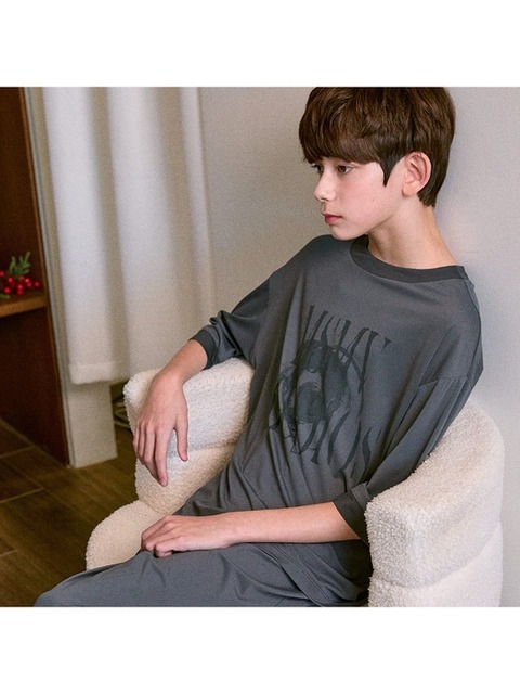 [마밤오가닉] 마밤 MSMV 쿨 냉감 블랙그레이ST 아동 주니어 키즈 잠옷 내의 실내복 링거 7부 세트
