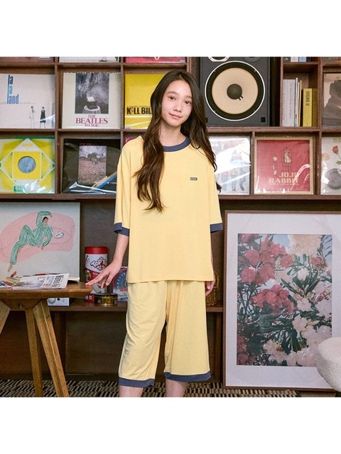 [마밤오가닉] 마밤 MSMV 쿨 냉감 레몬드랍 아동 주니어 키즈 잠옷 내의 실내복 링거 7부 세트