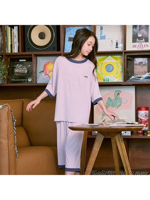 [마밤오가닉] 마밤 MSMV 쿨 냉감 밀키로즈 아동 주니어 키즈 잠옷 내의 실내복 링거 7부 세트
