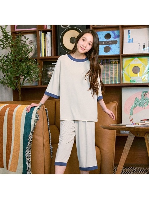 [마밤오가닉] 마밤 MSMV 쿨 냉감 크림베이지 아동 주니어 키즈 잠옷 내의 실내복 링거 7부 세트