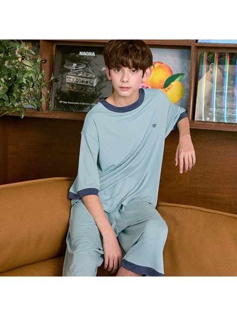 [마밤오가닉] 마밤 MSMV 쿨 냉감 블루민트 아동 주니어 키즈 잠옷 내의 실내복 링거 7부 세트