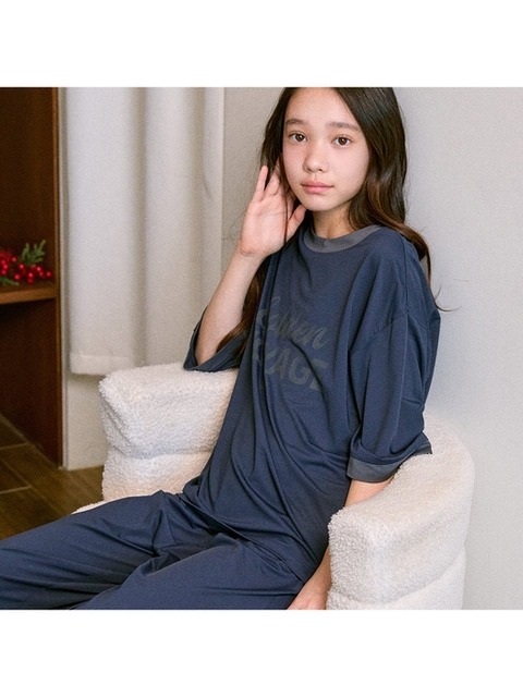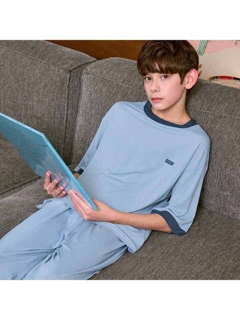 [마밤오가닉] 마밤 MSMV 쿨 냉감 블루차콜 아동 주니어 키즈 잠옷 내의 실내복 링거 7부 세트