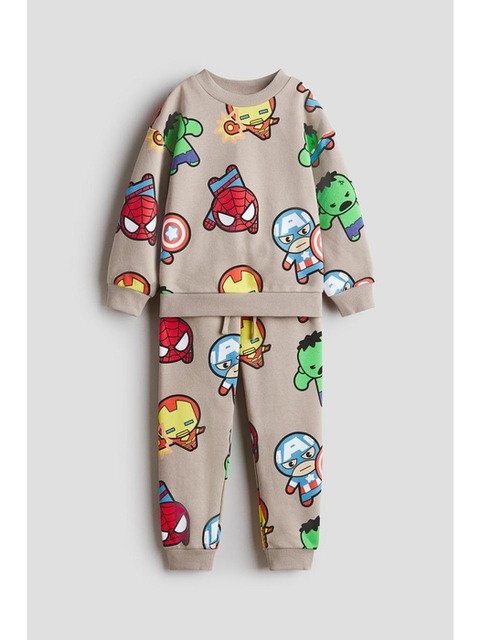 [에이치엔엠] 프린트 스웨트셔츠 2피스 세트 베이지/마블 코믹스 1169768035