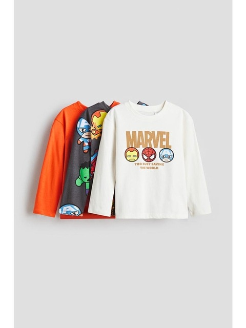 [에이치엔엠] 롱 슬리브 티셔츠 3피스 세트 오렌지/마블 코믹스 1172232013