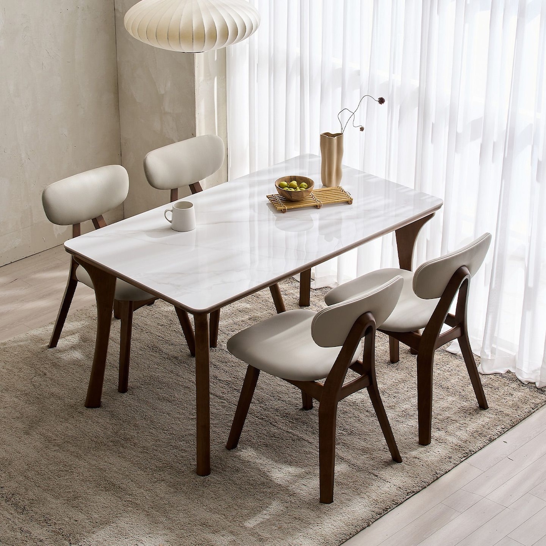 핀핀 세라믹식탁 세트 원목 4인용 6인용 식탁 포세린 마블화이트