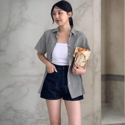 [다잇템]여성 베이직 색상 반소매 코튼 마원단 셔츠