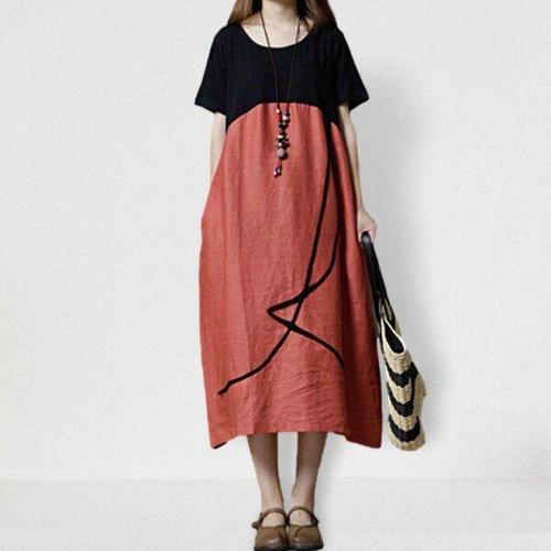 여름 여성 원피스 빅사이즈 루즈핏 브이넥 롱 원피스 패션 여자 면 마 반팔 원피스 CJJ