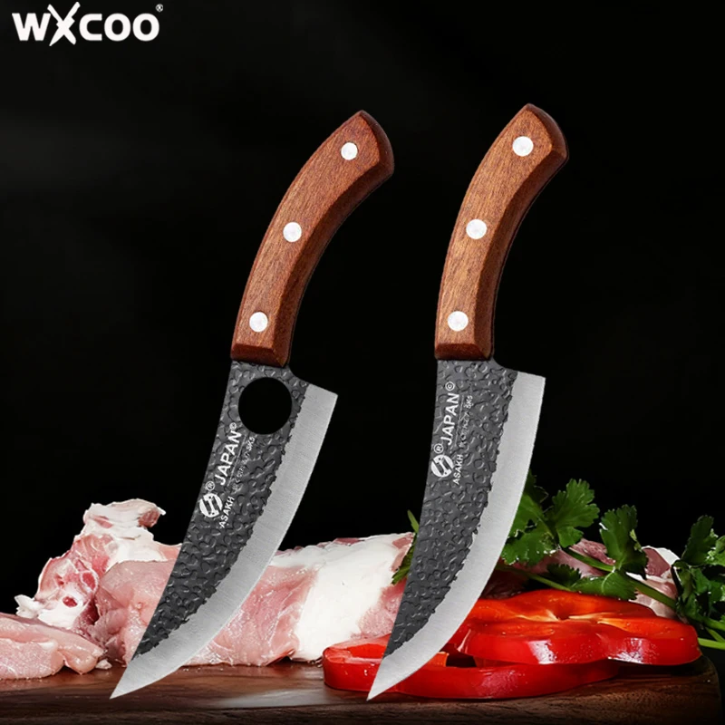 WXCOO 전문가용 수제 정육칼, 나무 손잡이, 스테인리스 스틸 본잉 나이프, 풀탱 주방칼