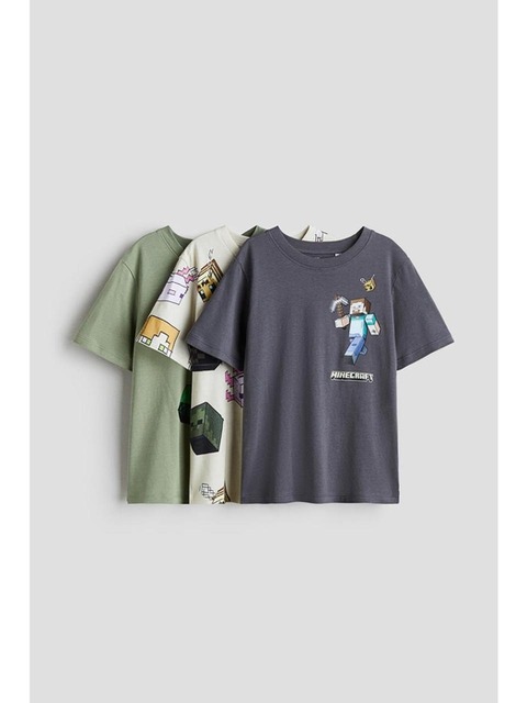 [에이치엔엠] 프린트 티셔츠 3피스 세트 다크 그레이/마인크래프트 1117463034