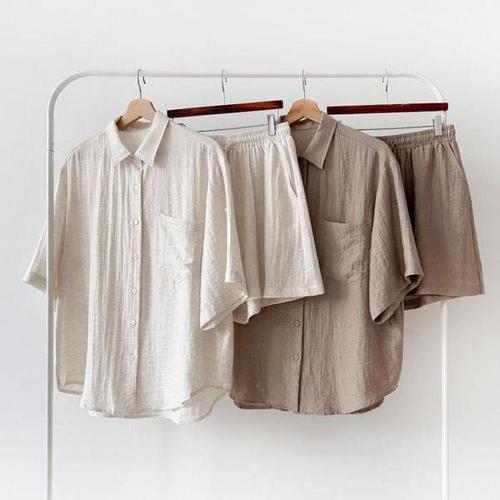 [다잇템]여자 박시핏 셔츠 마원단 투피스 레이온 세트
