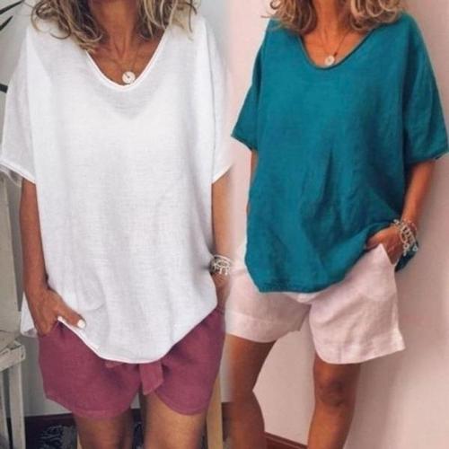 1+1 여성티셔츠 면 마 나시 루즈핏 린넨 블라우스 날씬해 통기성 버튼 이너티