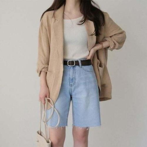 [셀럽하우스]린넨 QKKZ1995 베이직 오버핏 자켓 롤업 올데이 캐주얼 싱글 마