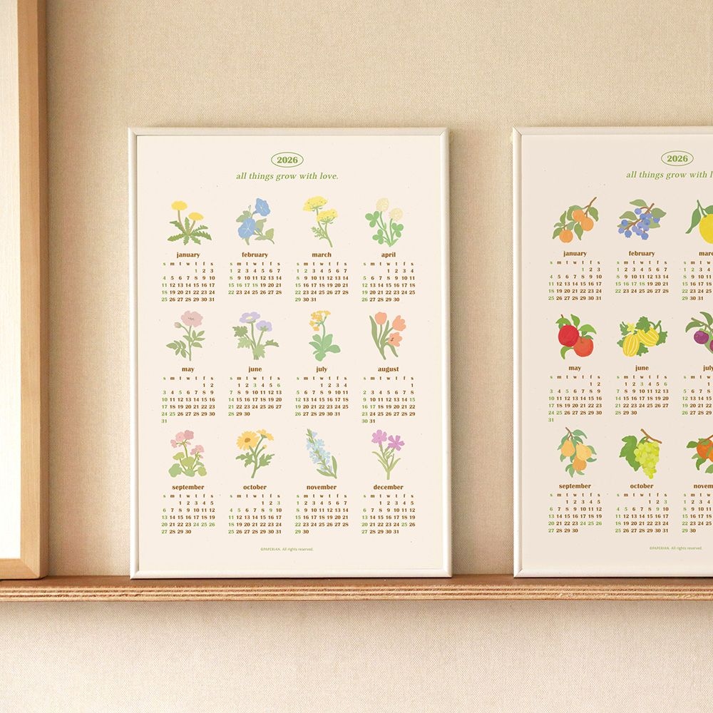 2026년 제철 연간달력 캘린더 벽걸이 큰캘린더 탁상 인테리어 소품 달력