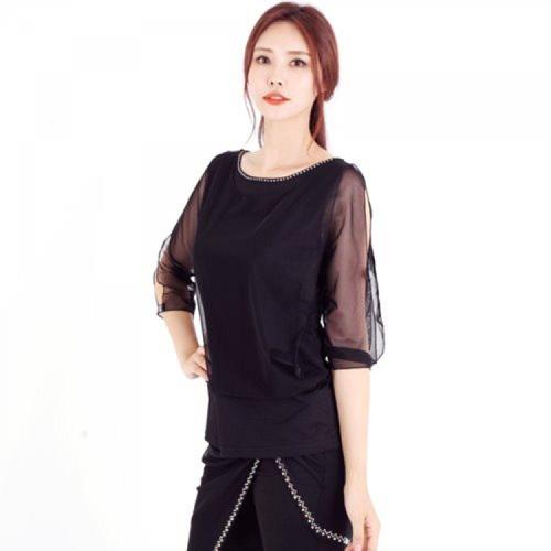 [까르죠아]까르죠아 사다리 망사 반팔 댄스 블라우스 스포츠 라인 라틴 모던 댄스복 상의 여성