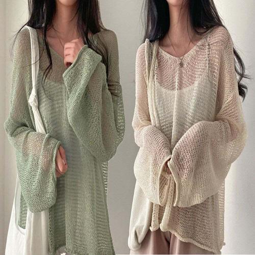 [셀럽하우스]여성 NONX7924 루즈핏 해변룩 그물 망사 긴팔 시스루 니트