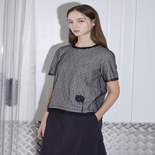 스테파니 HC07 펄 망사 폴라 티셔츠 A25TS5225