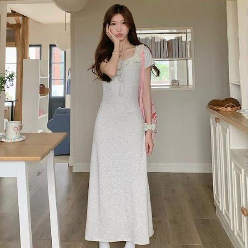 셔링 데일리룩망사 칼라 맥시 롱드레스 WFK21QW