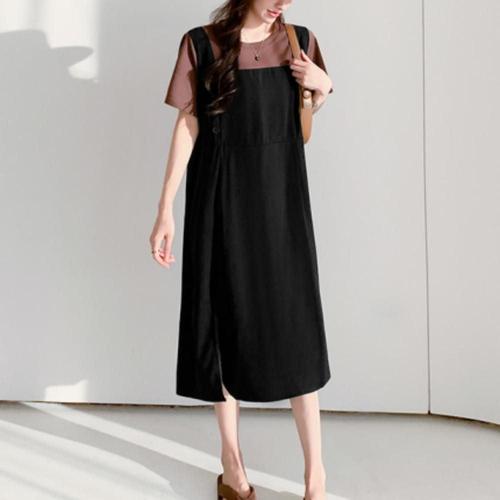 멜빵 원피스 여성 루즈핏 드레스 롱 심플 데일리