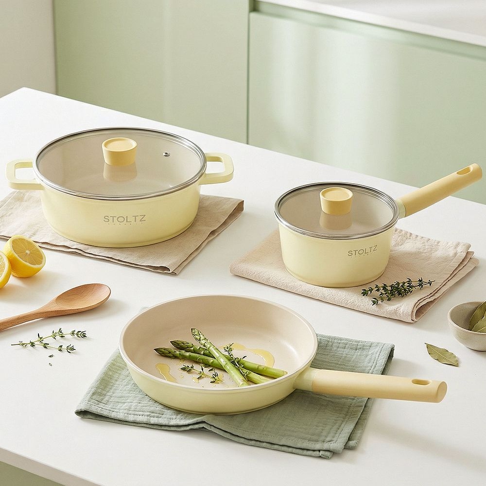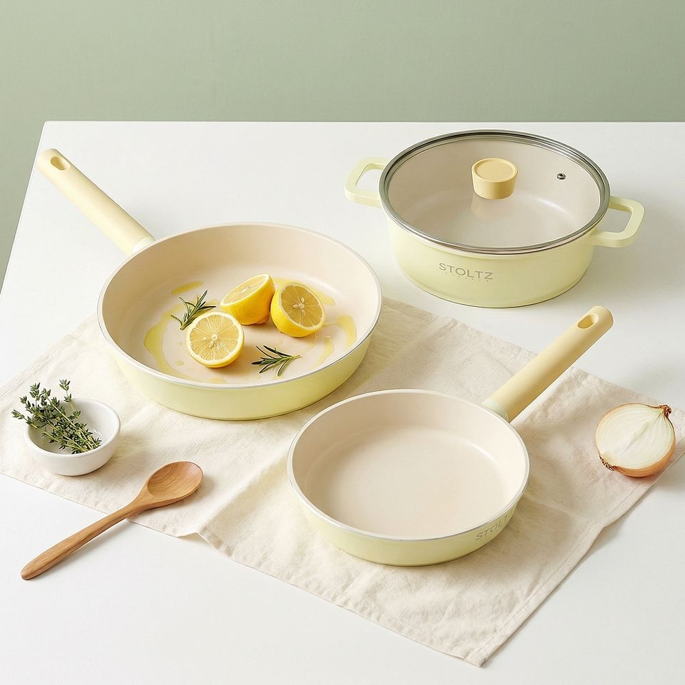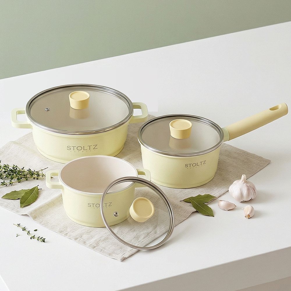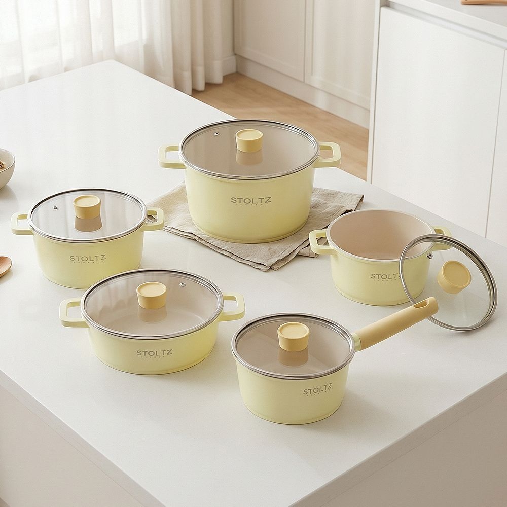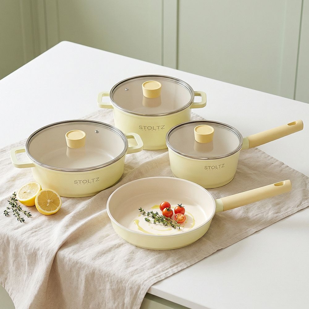 STOLTZ STOLTZ 슈톨츠 IH 인덕션 레몬머랭 멀티 쿡웨어 세트 8P 국내생산 통주물 냄비 후라이팬세트