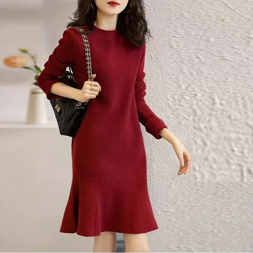 제로투올샵2 / 라운드넥 머메이드 니트 원피스 미디 여성용 블랙 S