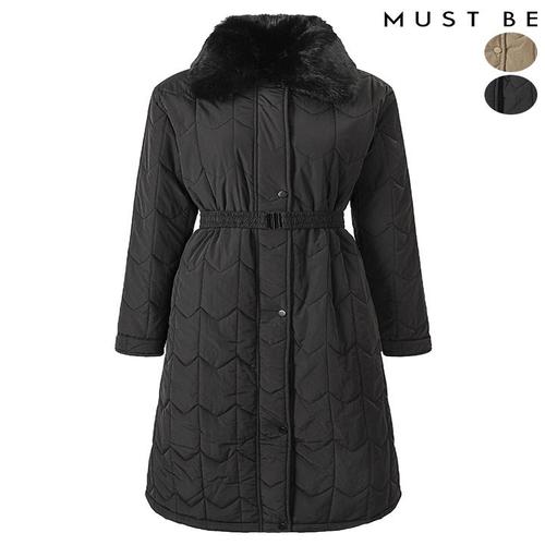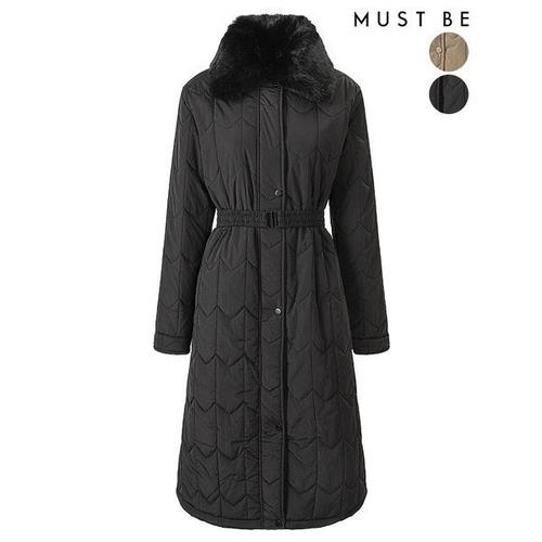 [머스트비]여성 탈착 토끼퍼 카라 벨티드 퀼팅 롱패딩
