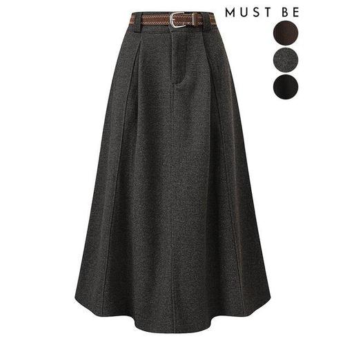 [머스트비]여성 밴딩 핀턱 플레어 스커트 (벨트set)