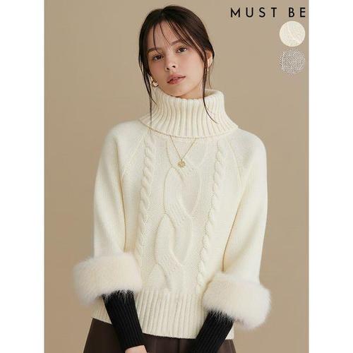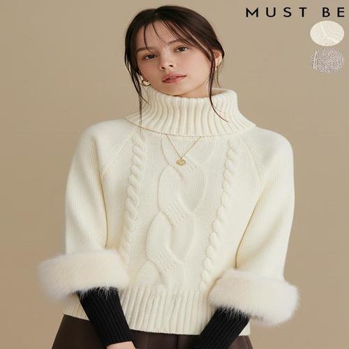[머스트비]여성 소매 퍼 오버핏 터틀넥 니트