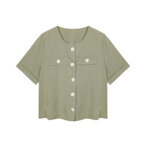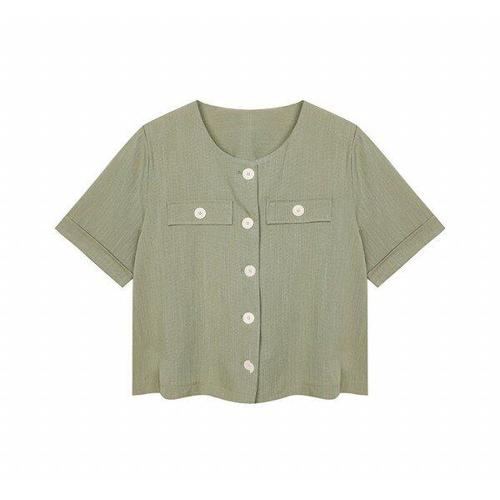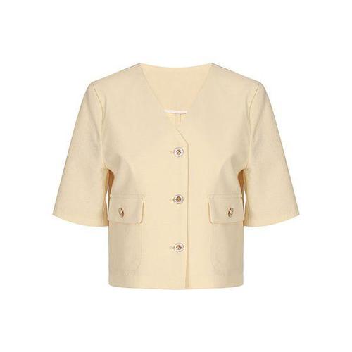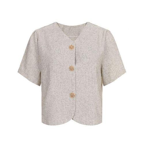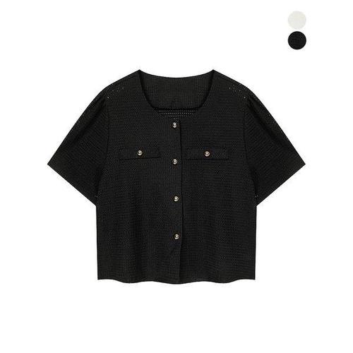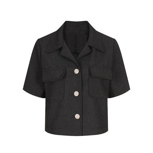 [머스트비]여성 골드 버튼 라운드넥 반팔 자켓