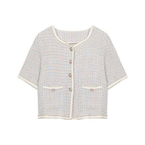 [머스트비]여성 골드 라인 트위드 반팔 자켓
