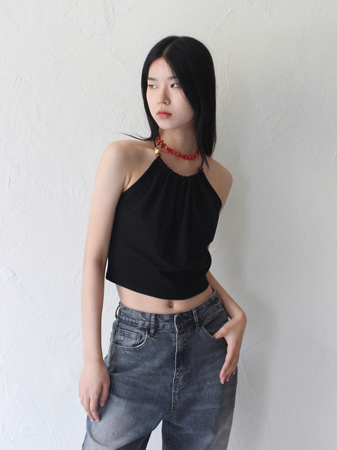 [루바티] 우든 비즈 홀터넥 탑_블랙