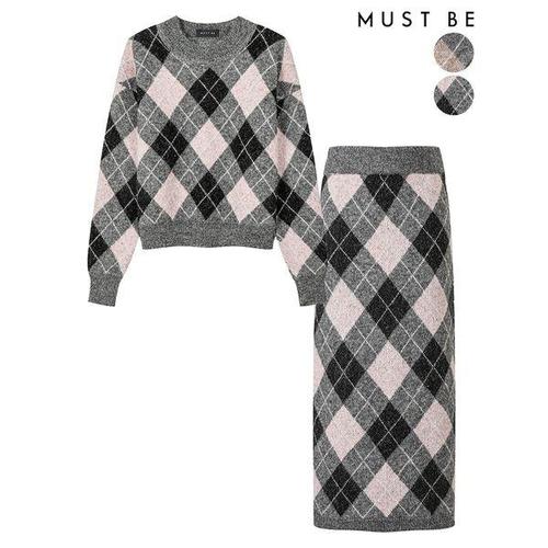 [머스트비]여성 아가일 울 니트 롱스커트 셋업