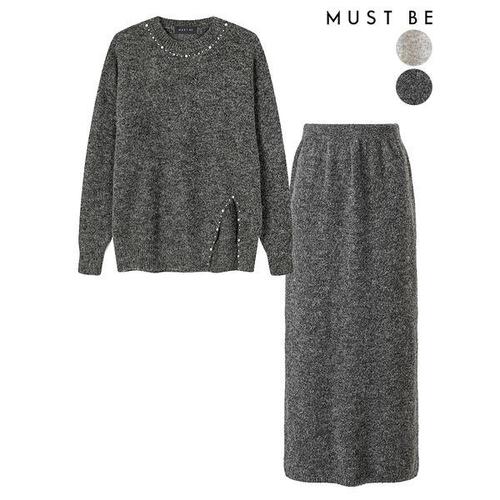 [머스트비]여성 진주 울 니트 롱스커트 셋업