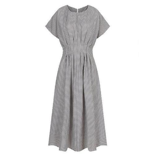 [머스트비]여성 라운드 핀턱 체크 플레어 원피스