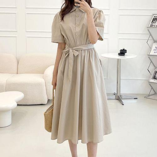 [머스트비]여성 벨티드 히든버튼 셔츠형 원피스