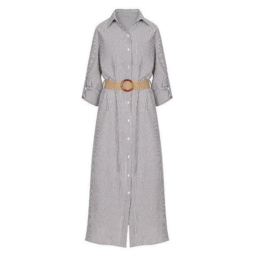 [머스트비]여성 롤업 벨티드 스트라이프 셔프 원피스